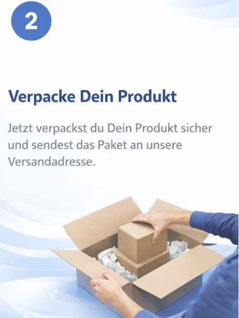 Eingangsbestätigung: Nach Erhalt wird das Produkt schnell geprüft und du bekommst eine Eingangsbestätigung per Email.